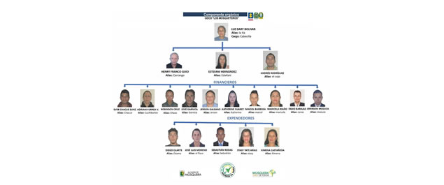 Alias “La tía” era la líder en una estructura jerárquica que incluía a los “líderes de la zona” y posteriormente a los “jíbaros”. Con esta información, la Policía Nacional a través de unidades adscritas a la SIJIN DECUN junto con la Fiscalía, llevaron a cabo la operación “Caballo de Troya” que tuvo: 47 actuaciones de agente encubierto, 32 pruebas de PIPH, 7 actividades de inteligencia, 2 reconocimientos de álbum fotográfico y 2 inspecciones técnicas del lugar de los hechos. Así mismo durante la captura se incautaron 5 equipos terminales de telefonías móviles de quienes pertenecían a Los Mosqueteros.