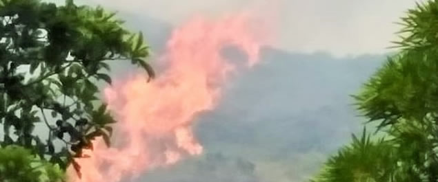 Danilo Rocha, alcalde del municipio, manifestó que desde hace dos días se atiende una conflagración en el cerro de la vereda de Santa Teresa y que ha sido difícil de controlar por el complicado acceso a la zona.
