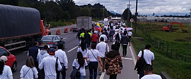 La marcha que inició a las 9 de la mañana desde la Universidad de Cundinamarca, convocó aproximadamente 300 personas, quienes le siguen solicitando al Gobierno Nacional una tarifa preferencial en el peaje de los andes, para los habitantes del municipio. A su vez exigen la construcción de puentes peatonales en la autopista norte y en la vía que comunica a los municipios de #Cajicá y Chía.