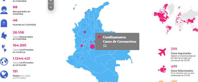 En el reporte del día de hoy se informaron 94 casos nuevos de coronavirus y 11 fallecidos en Colombia, para un total de 1.579 pacientes con COVID-19 y 46 muertes en el país.