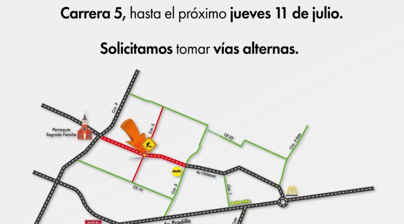 Aunque inicialmente se estimaba que las obras no tardarían, la situación llevó a determinar que estas se extenderán hasta el próximo 11 de julio, por lo que a partir de hoy domingo 7 de julio se implementará un plan de movilidad que permite utilizar vías alternas y se realizará un proceso de socialización con la comunidad afectada.