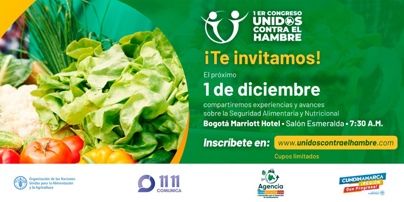 Leer másLa Gobernación de Cundinamarca junto a su Agencia de Comercialización y la Organización de las Naciones Unidas para la Alimentación y la Agricultura – FAO, realizan el primer Congreso “Unidos Contra el Hambre”, este 1 de diciembre a las 8:00 a.m. en el Hotel Marriott en Bogotá, el cual será abierto al público con cupos limitados.