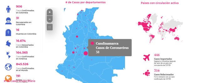 El país ya registra 108 nuevos casos de coronavirus y 2 fallecidos en Colombia, para un total de 906 pacientes con COVID-19 y 16 muertes.