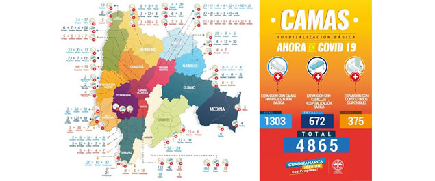 “Vamos a tener en Girardot en el alto Magdalena 66 camas de cuidados intensivos, Sumapaz y Fusagasugá 56 camas, Soacha 125, Facatativá en Sabana Occidente 63 camas, Sabana Centro 200 camas, y en Bogotá 106 camas al servicio exclusivo de los cundinamarqueses”, detalló el mandatario departamental.