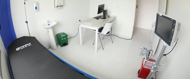 La estructura se compone de un consultorio privado con área de lavamanos y mesón de servicios, una sala de espera para recepción de pacientes, un baño mixto y una zona de vestier para el médico encargado, todo distribuido en 40 metros cuadrados. El Módulo dispone de todas las instalaciones eléctricas, hidráulicas y sanitarias, necesarias para entrar en operación inmediatamente.